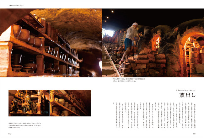 やちむんづくりの一年を追い、捉えた作陶風景を豊富なビジュアルで掲載。土づくりから始まる共同作業、器づくり、窯焚き、窯出しまで、その制作現場に密着し、徹底的に取材しています。作陶風景を含む本書撮影は、映画「あめつちの日々」の監督・川瀬美香さんです。