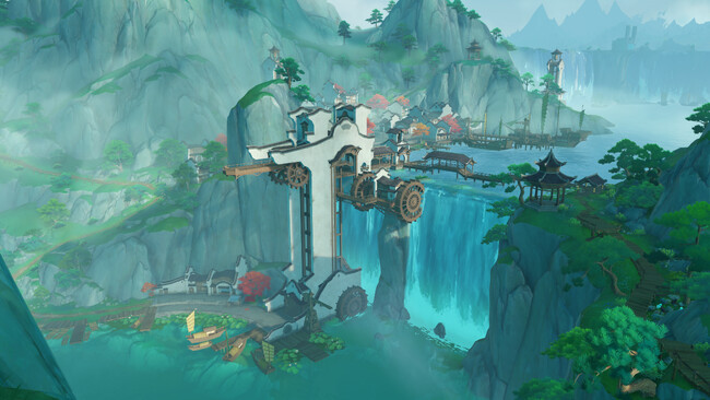 璃月地域の新エリアとして開放される沈玉の谷は、高くそびえ立つ山々と流れる滝、繁栄する村と神秘的な仙人の伝説が語られる、霧に包まれた美しい場所です。