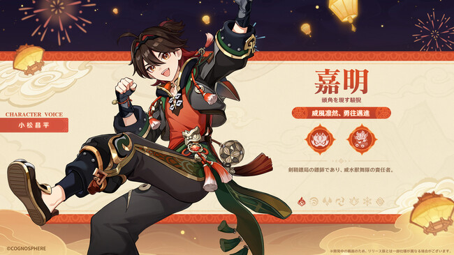テイワットの新年と共に、過去のストーリーで知られる仙人の人間の姿である「閑雲(カンウン)」と、年若い獣舞演者の「嘉明(ガミン)」がプレイアブルキャラクターとして実装されます。