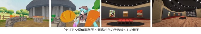 また、名探偵「ナゾミク」と一緒に挑む謎解きアトラクション「ナゾミク探偵事務所 ~怪盗からの予告状~」では、クリア報酬として「ナゾミクムービング絵画」を入手できます。「ナゾミクムービング絵画」は、イラストレーター「白身。」描き下ろしのイラストで、動く絵画というVRならではの演出が楽しめます。