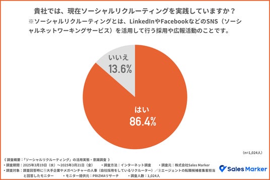ソーシャルリクルーティングを実践しているかどうかを問うたところ、約9割が『はい』と回答しました。