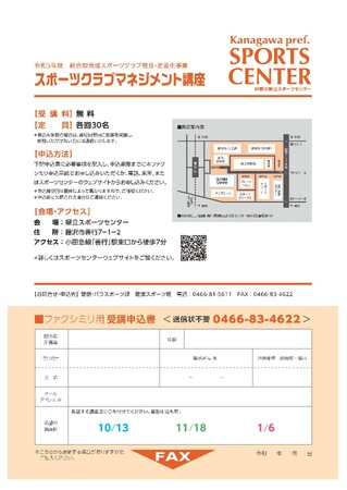 「スポーツクラブマネジメント講座」は、総合型地域スポーツクラブ等をはじめとする、クラブの運営に必要となるマネジメント能力やスポーツ指導者・スタッフに必要な知識・指導方法等を学ぶことができる研修です。