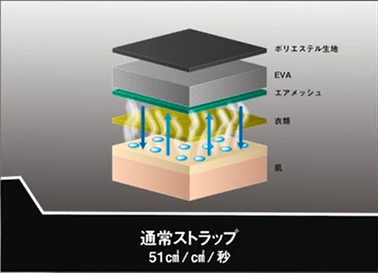 「高通気スプリットストラップ」は従来品に比べて高い通気性を実現