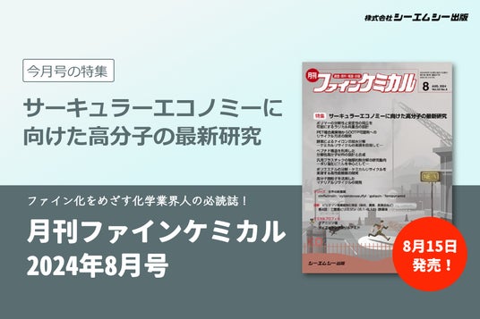 株式会社シーエムシー出版(本社:東京都千代田区神田錦町1-17-1、代表取締役:辻賢司)は、 雑誌『月刊ファインケミカル2024年8月号』(定価:税込7,700円)を、2024年8月15日に発売いたします。 本誌は当社ECサイトおよび全国の書店にてご購入いただけます。
