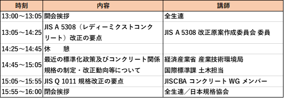 レディーミクストコンクリートの製造、販売、使用に携わる方々に今回改正される内容を正しくご理解いただくため、同時に改正を予定しているJISマーク表示制度の認証指針とともに、JIS原案作成に係わる委員会の委員等による説明会を開催いたします。