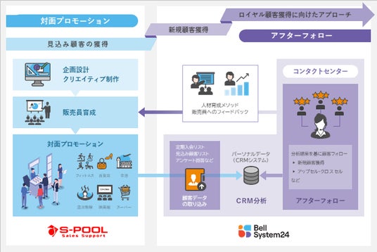 本サービスは、リアルでの顧客接点を強化したい企業向けに、対面プロモーションによる見込み顧客の獲得から、CRM分析に基づく電話などのアフターフォローを通じた定期購入会員への引き上げまで、一連の支援をワンストップで提供します。クライアント企業は、商材を準備するだけで、最適なプロモーションを実施することが可能となります。2024年3月のサービス提供開始以来、主に通販・ECを運営する企業を中心に導入が進み、売上拡大や顧客体験価値の向上を促進しています。