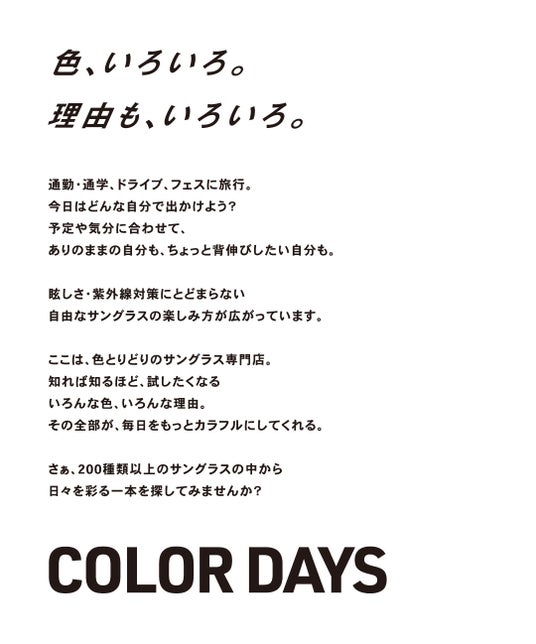 サングラス専門店『COLOR DAYS』を5月16日から大阪にて開催