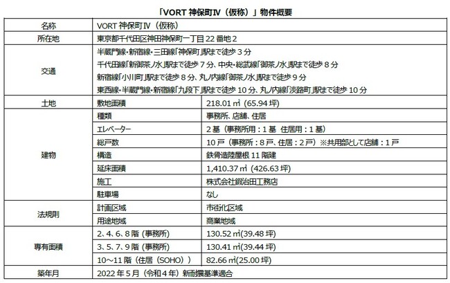 「区分所有オフィス(R)」を主軸に資産形成コンサルティングを行う株式会社ボルテックス(東京都千代田区 代表取締役社長 兼 CEO 宮沢 文彦、以下当社)は、「VORT神保町IV(仮称)」を取得しました。