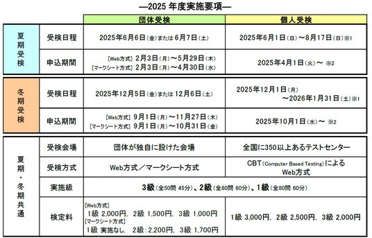 【夏期受検の申込み】団体受検2/3~、個人受検4/1~受付開始