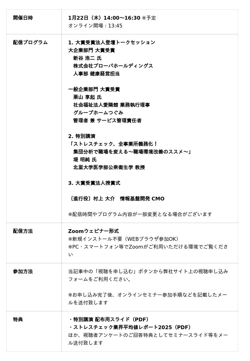 ●「ストレスチェック大賞2025」記念ウェビナー概要