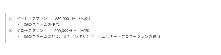 ※メンタリング・ウェビナーの回数や、プロモーションの内容、提案上限人数など詳しくはお問合せください。