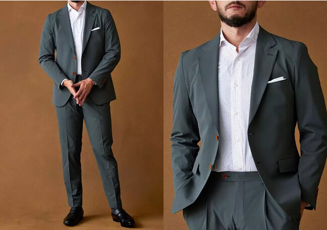ストレッチ性や防シワ性など、機能性の高い素材のみを厳選し、ビジネスシーンでも快適に着用できるセットアップです。自分にぴったり合ったサイズはもちろん、お好きな色柄で自分好みに合った一着をお作りいただけます。