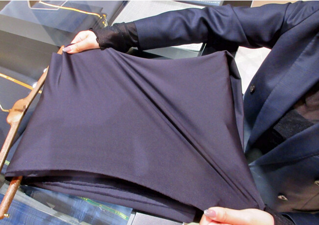 今回のセットアップ生地は伸縮性が高く、軽さと形状記憶がある機能性抜群の生地です。
