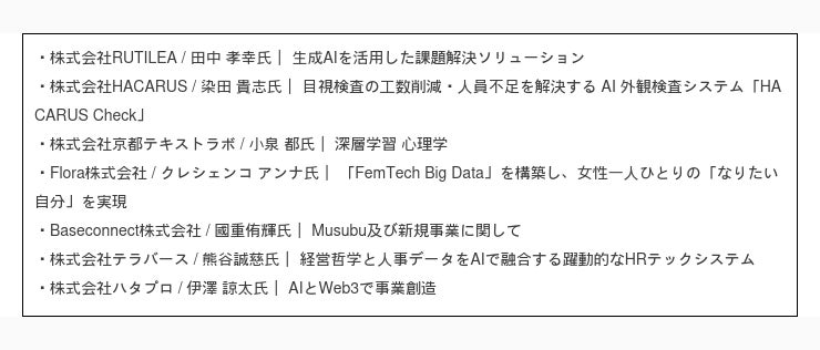 <登壇者> ※ピッチ順序や登壇者は変更となる可能性があります