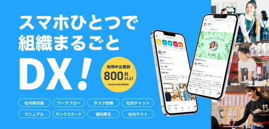 社内掲示板/ワークフロー/タスク依頼/社内チャット/マニュアル/福利厚生/社内カレンダー/社内テスト/サンクスカード/社内ポイント/日報/社内アンケート etc…