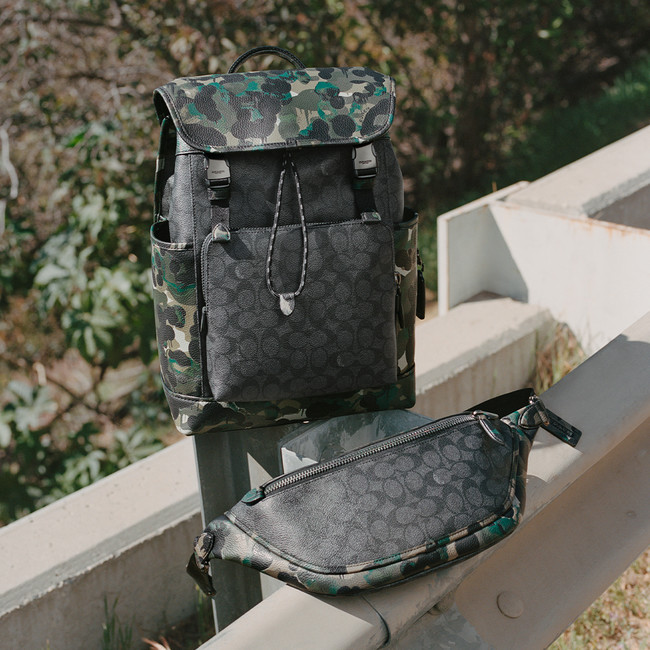 コーチからオリジナルの迷彩柄 “Camo Print (カモ プリント)” にアイコニックなシグネチャーパターンをミックスした新作が登場。コーチの “カモ プリント” は、クラシックなカモフラージュ柄をニューヨークのエネルギーとアティチュードを映し出すドリップ ペインティングのスタイルで再解釈し、2015年の発表以来好評を博してきました。 その ”カモ プリント” に、この夏ダークトーンのシグネチャーパターンを組み合わせた新作が登場。大胆で意外な二つの柄のミックスが、ストリートのテイストが強いカモフラージュ柄を都会的でクールな印象にアップデートし、夏のスタイリングを彩ります。