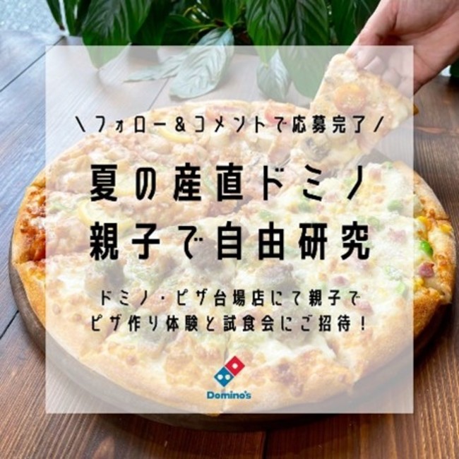 ・応募方法:応募期間中に、ドミノ・ピザ公式Instagramアカウント(@dominos_jp)をフォローの上、ドミノ・ピザの #夏の産直ドミノ自由研究 がついた投稿に、参加希望の旨をコメント