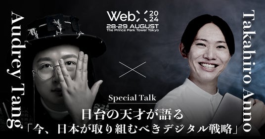 国内最大手のWeb3メディア「CoinPost」の運営会社、株式会社CoinPostが企画・運営し、一般社団法人WebX実行委員会が主催する国際Web3カンファレンス「WebX」において、元台湾デジタル担当大臣オードリー・タン氏と、都知事選に立候補し15万票を獲得したエンジニア、安野たかひろ氏による特別対談が実現します。