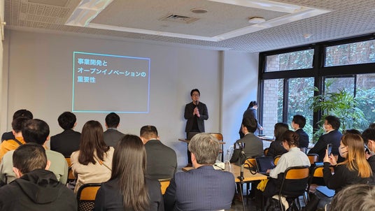 続いて、本事業を受託運営するAlphaDriveのグループ執行役員・宇都宮より、参加者の皆様へ事業開発とオープンイノベーションの重要性についてお話ししました。