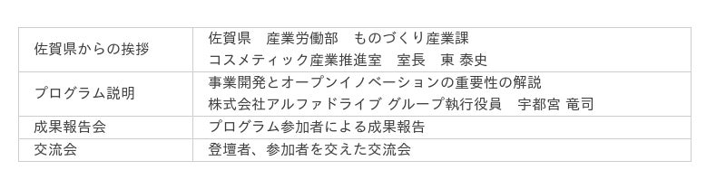 株式会社アルファドライブ(代表取締役社長 兼 CEO 麻生要一)は、2024年度、佐賀県より「コスメオープンイノベーション事業運営業務」を受託・運営しました。2025年3月10日、本プログラムの成果報告会を開催いたしました。本記事は、成果報告会当日の様子をまとめたレポートです。