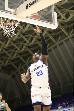後半、序盤こそ一進一退の攻防となるが徐々に福岡のディフェンスに強度生まれ始める。#23ハリス、#32ゴードンの連続得点でリードを縮め、勢いに乗った福岡は#7グリン、#23ハリス、#43永吉の連続3PTでこの試合初めてリードを奪う。しかし青森も意地をみせ、両者譲らない4Q終盤までシーソーゲームを繰り広げるが、#23ハリスがファールアウトとなると青森に逃げ切られるかたちとなり、初戦を落とした。