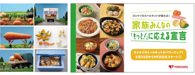 「つくる人から笑顔に。」をテーマに全国でミールキット宅配サービスを提供するヨシケイグループ(本部所在地:静岡県静岡市 / 代表取締役:井野口 雄一)は、6/13 号より、自社商品の注文カタログ『すまいるごはん』掲載メニューのリニューアルを行います。それに伴い、5/9(月)よりヨシケイ 2022 春 CM『リニューアル紹介』篇(30 秒/15 秒)の全国放映を開始します。