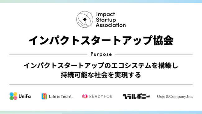 ユニファ株式会社、ライフイズテック株式会社、READYFOR株式会社、株式会社ヘラルボニー、五常・アンド・カンパニー株式会社など23社は、2022年10月14日に「インパクトスタートアップ協会(Impact Startup Association)(以下、「ISA」)」の設立を発表いたしました。