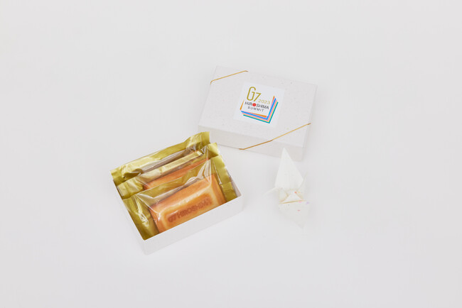 また、このレモンフィナンシェを広島市平和記念公園に年間1000万羽の送られる折り鶴より再生されたサステイナブルな折り鶴再生紙『平和おりひめ』を使用したパッケージに、平和への祈りを込めて、折った折り鶴と共に収めました。