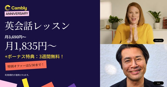 オンライン英会話サービス「Cambly(キャンブリー)」を提供する米サンフランシスコ発のCambly Inc.は、アニバーサリーを記念した特別キャンペーンを2025年5月26日(月)から6月27日(金)まで実施しています。