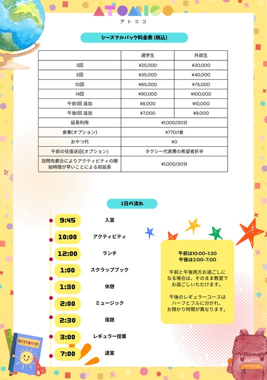 ・午前はアクティビティ、午後はレギュラーコースとなります。