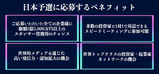 2025年度の日本予選は東京、九州、東北で開催され、3箇所で合計8,000人以上の大手企業、投資家、メディアの方々などが、スポンサーや観客として会場及びオンラインで参加しました。事業拡大を目指すスタートアップにとって、資金調達、事業提携やマーケティングに繋がるまたとないチャンスとなります。また、日本予選だけに特別に1億5千万円規模の投資賞金も用意されており、予選に応募するすべてのスタートアップに資金獲得のチャンスがございます。
