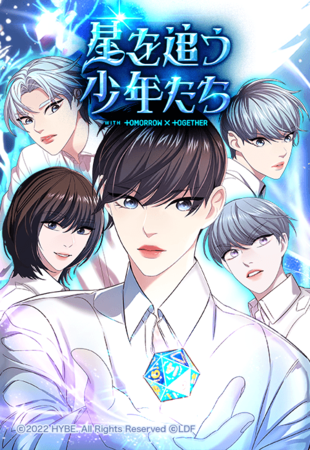 HYBEオリジナルストーリー『星を追う少年たち』は世界の滅亡を阻止する運命を背負った少年たちが強く美しく成長していく姿を描いたダークファンタジーで、ある日魔法能力が覚醒したアイドルグループ「Star One(スターワン)」のメンバー5人が「星の歌」を探すために孤軍奮闘する物語をWebtoonとWebノベルで展開しています。『星を追う少年たち』は、TOMORROW X TOGETHERとコラボレーションとしたオリジナルストーリーとしてTOMORROW X TOGETHERの楽曲やミュージックビデオ盛り込まれた音楽的なメッセージによって解釈を与え、ファンに新たな楽しみを提供しています。