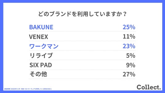 - 利用ブランドは「BAKUNE」とワークマンで全体の約半数を占める結果に