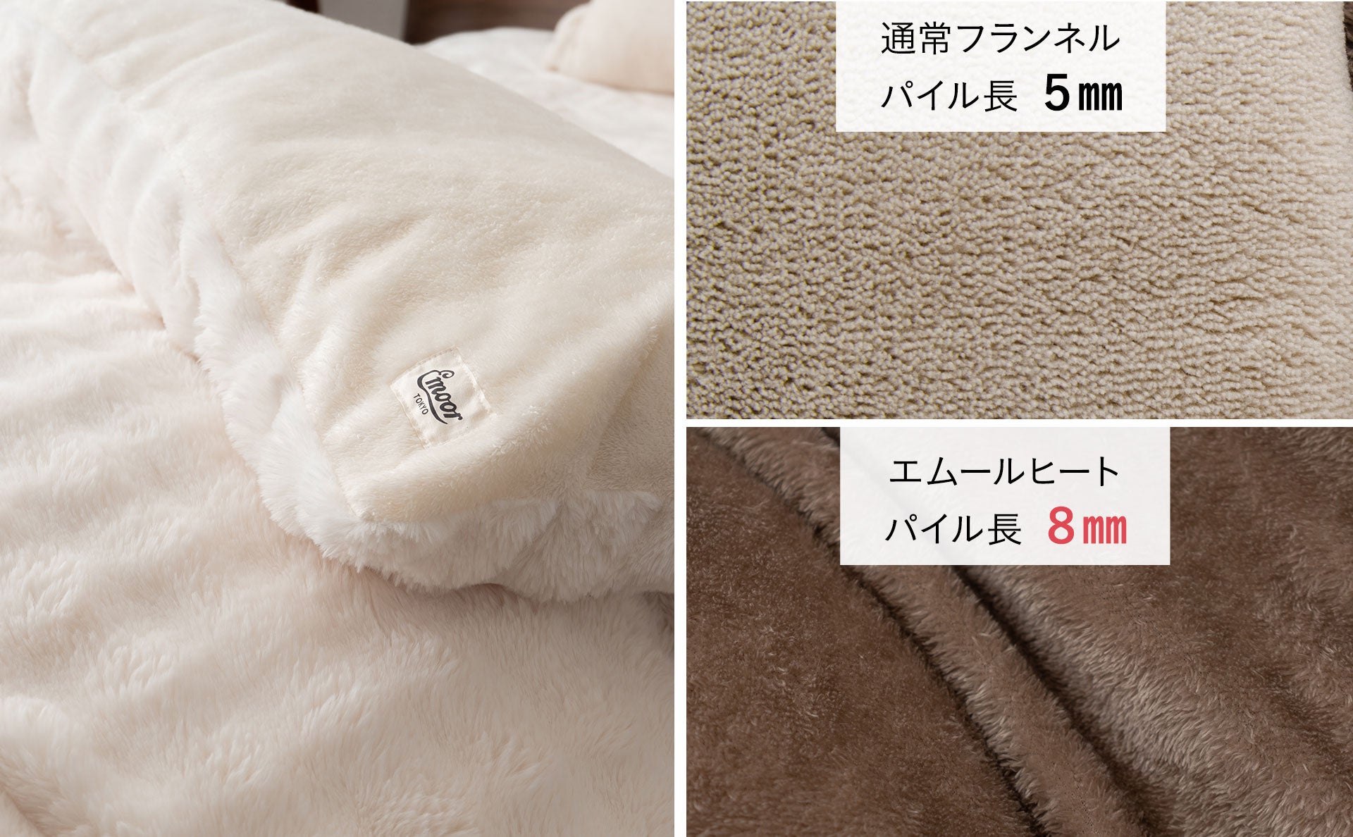 エムールで毎年高い人気を誇るロングセラー「エムールヒート」シリーズに、見た目の可愛らしさと心地よいぬくもりを兼ね備えた『フランネル掛け布団カバー ふわふわタイプ』が新登場。