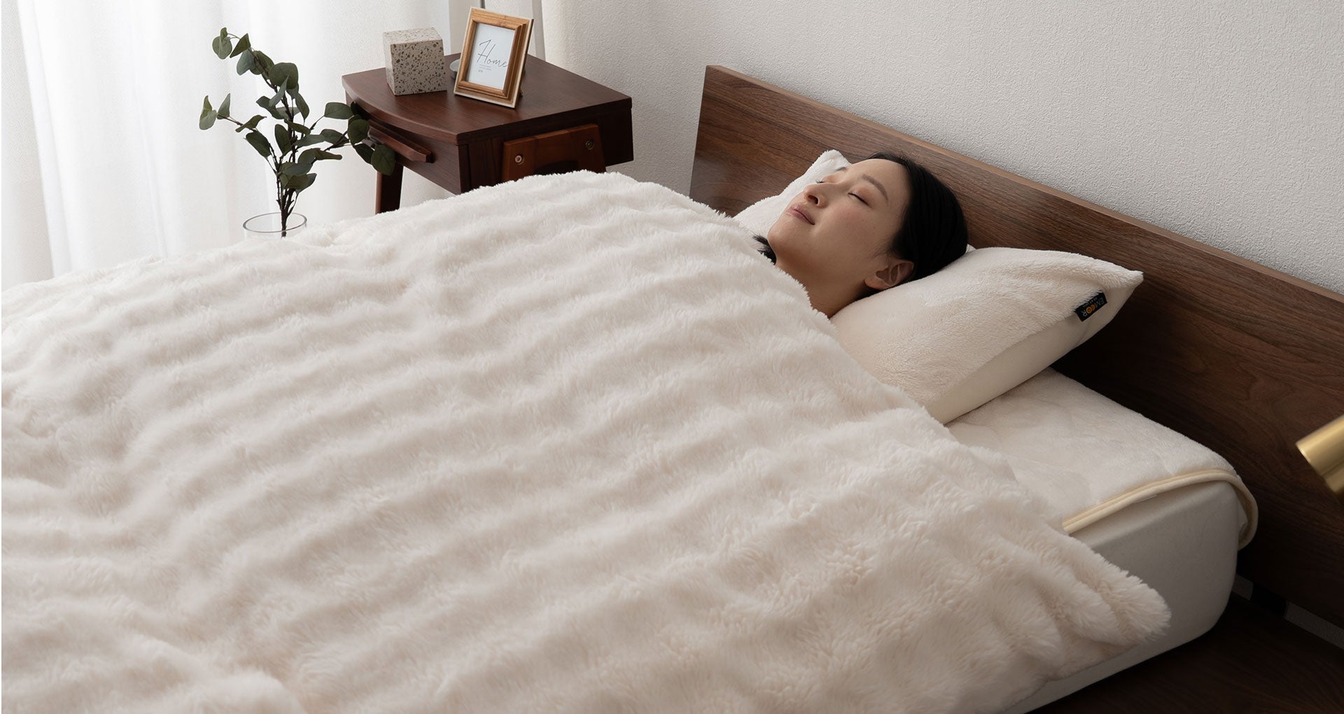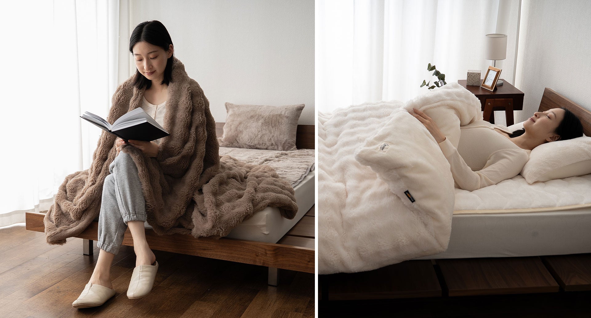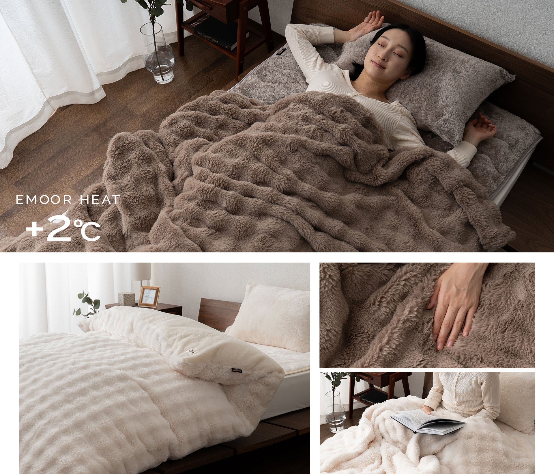 「身体に合った寝る・座る・たたむ」を提供する健康家具ブランドEMOORを展開する株式会社エムール(東京都立川市:代表取締役 高橋 幸司/以下エムール)は、2025年10月23日より、『エムールヒート フランネル掛け布団カバー ふわふわタイプ』の販売を開始しました。本製品は、人の体から発する蒸気や汗を吸収し、熱に変える特殊素材「エムールヒート」を採用。発熱エネルギーを持続的に活用することで、心地よい暖かさが長時間続きます。また、今季新登場の“もこもこ”としたラビットファー生地を組み合わせ、ふんわりとした肌ざわりと見た目の可愛らしさを両立。インテリアにも映える上質なデザインで、寒い季節の寝室を優しく包み込みます。