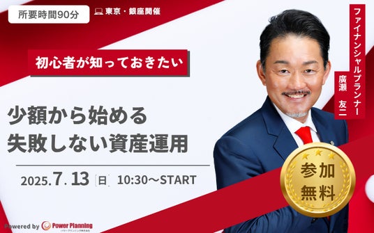 7月13日(日)10時30分より人気講師、廣瀬友二氏による「初心者が知っておきたい少額から始める失敗しない資産運用」セミナーを開催いたします。
