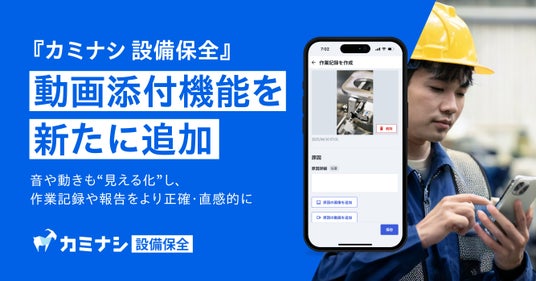 株式会社カミナシ(本社:東京都千代田区、代表取締役:諸岡 裕人、以下「カミナシ」)は、工場設備の保全業務をデジタル化するクラウドサービス『カミナシ 設備保全』において、作業記録や報告に動画を撮影・添付できる新機能の提供を開始しました。