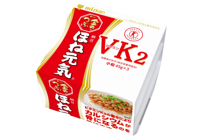 骨といえばカルシウムですが、骨の形成にはカルシウムだけではなくビタミンK2(VK2)も重要です。本商品はそんなVK2が豊富に含まれている特定保健用食品の納豆で、発売後20年以上のロングセラー商品です。今回、ほね元気の機能の秘密である「VK2」を知っていただきたく、パッケージに大きくデザインしました。毎日の健康維持に「VK2」が目印の「ほね元気」習慣始めてみませんか?