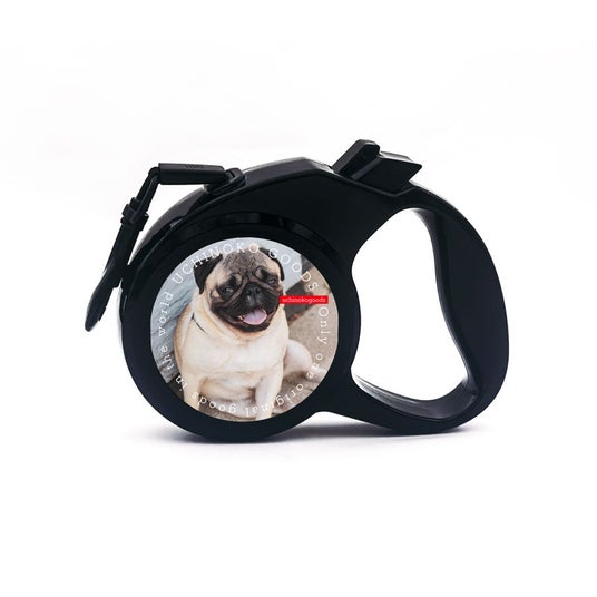 ペット用の伸縮リード(リールリード)を1個からオリジナルで作成できます。ワンタッチコントロールボタンで簡単操作、ペットの写真をフルカラー印刷できるオリジナルリードです。