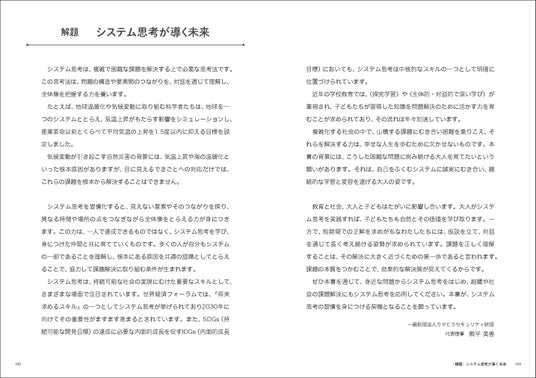 日本の学校教育においても、〈探究学習〉や〈主体的・対話的で深い学び〉を求める流れが加速しているなかで、システム思考という構造的に考える技術は大いに役立ちます。