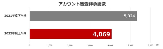 その結果、2022年度上半期は4,069件のアカウントを非承認としました。2021年下半期と比較してアカウント審査非承認数が減少した理由は、2022年4月に「広告アカウント審査基準」を公開したことにより(※7)、非承認となるものを広告主があらかじめ想定しやすい環境となったことが影響したものと推察できます。