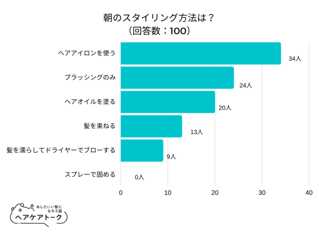 「朝のスタイリング方法は?」とアンケート調査した結果、1位は『ヘアアイロンを使う』でした。