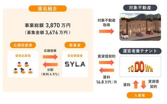 シーラテクノロジーズ株式会社(代表取締役会長:杉本 宏之、NASDAQコード:「SYT」)の子会社である、株式会社シーラ(本社:東京都渋谷区、代表取締役CEO:湯藤 善行)は、DOTOWN株式会社が運営する「第3期 DOTOWN HOUSE Ocean Front」のファンド募集を4月8日(火)より募集開始いたします。運用期間6ヶ月、募集金額は3,676万円です。