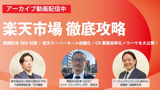 本セミナーでは、楽天市場での売上拡大に向けたSEO対策や昼夜問わず自動で商品特集ページを作成する方法や顧客対応について、数多くのECサイトの支援実績を持つ各社から具体的で実践的なノウハウを公開します!