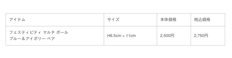 フィスカース ジャパン株式会社(所在地:東京都千代田区、代表取締役社長:Christophe Ranchoux)が展開する、英国王室御用達ブランド、「ウェッジウッド」は、人気の「フェスティビティ」シリーズから、アイボリーとブルーのペアの小ぶりでかわいいマルチ ボールを発売します。https://www.wedgwood.jp/whats_new/newproducts/post_93.html