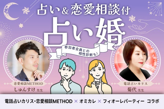 大手婚活総合会社の株式会社トータルマリアージュサポートが運営するイベント事業「フィオーレパーティー」と、人気電話占い「Charis」を運営する株式会社ティファレト、婚活情報サイト「オミカレ」がコラボ!