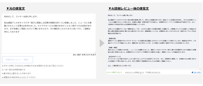 ~提案文をAIで添削レビューし、効果的なマッチングを創出~