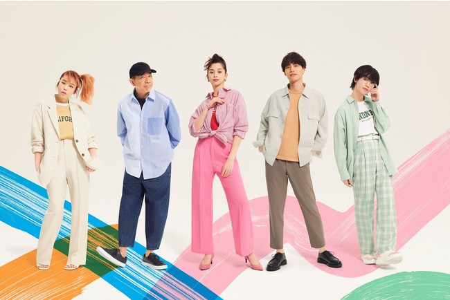 2022年春夏シーズンは前シーズンに引き続き、中条あやみさん、福士蒼汰さん、木梨憲武さん、Charaさん、ゆうたろうさんの5名をキャストとして迎え、あらゆる人が自由に自分らしく楽しめる最旬のカラフルファッションをお届けします。