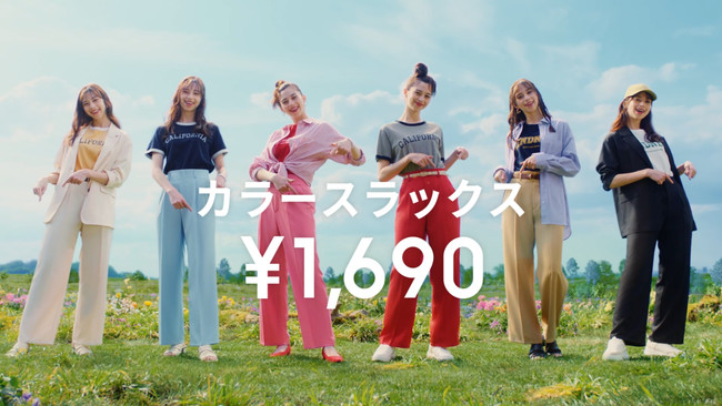 新CMのテーマは「COLOR TO THE PEOPLE」。カラフルで楽しくて少し不思議な世界に住む人々を描いています。春夏シーズン第1弾となるテレビCMでは、ファッションを楽しみたい春夏にぴったりのビビッドカラーで華やかに明るく着飾るボトムスとして「カラースラックス」を中条あやみさん、Charaさん、ゆうたろうさんが着用しています。