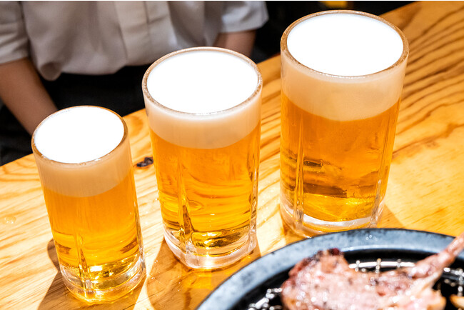 旨い羊肉を食べて生ビールを流し込む!1杯目に最適の「中生」(560円)から、ガブガブ飲みたい方にピッタリの1リットルジョッキ「筋トレ!生」(1100円)を揃えました。さらに、ジンギスカンの本場・北海道ならではの「夕張メロンサワー」「ガラナサワー」「ハスカップサワー」(各460円)や、北海道の地酒「男山 秘造り」、「国土無双 純米酒」(各750円)なども用意しています。